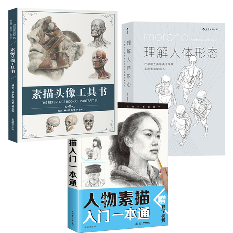 素描頭像工具書+ 理解人體形態 +人物素描入門一本通 3冊