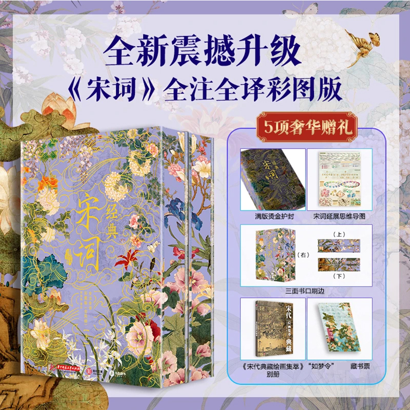 《經典宋詞》全註全譯全彩(全2冊) 精裝16開 三面刷邊 全書共800頁 重3KG隨書附贈 宋代繪畫集萃+如夢令藏書票+宋詞延展思維導圖