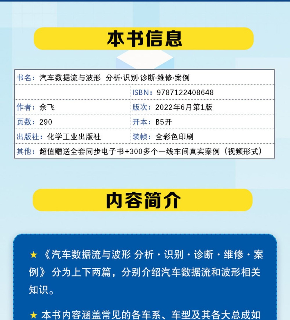 本書重點介紹了汽車數據流和波形的基本原理及分析、診斷和維修方法,對於較複雜的內容及部分案例還專門配備了數據流與波形操作視頻,有利於讀者快速學習、理解和掌握。