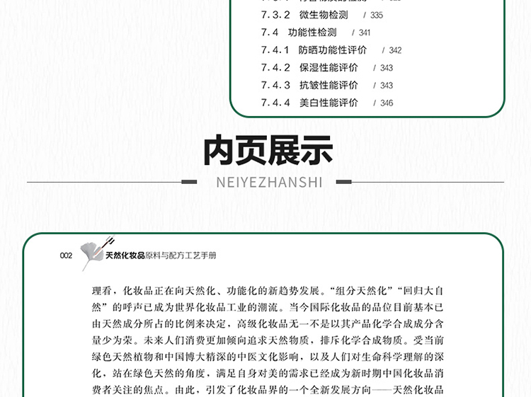 2.本書能夠幫助讀者快速建立對化妝品的基本概念、生產工藝過程和功能化原料的認識,方便對天然化妝品的工藝和配方進行選擇和進一步開發研究,也可指導讀者解讀化妝品中天然組分的功效,幫助廣大讀者選擇合適的化妝品;