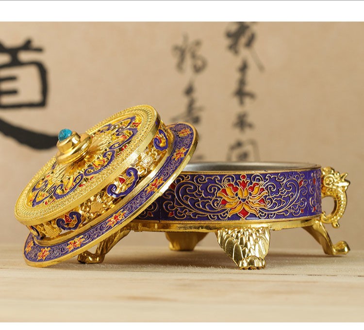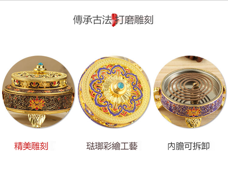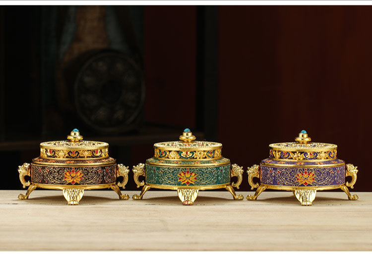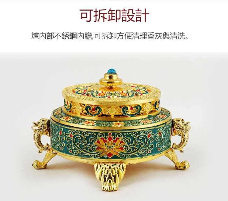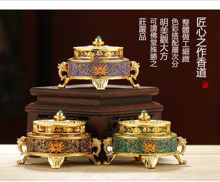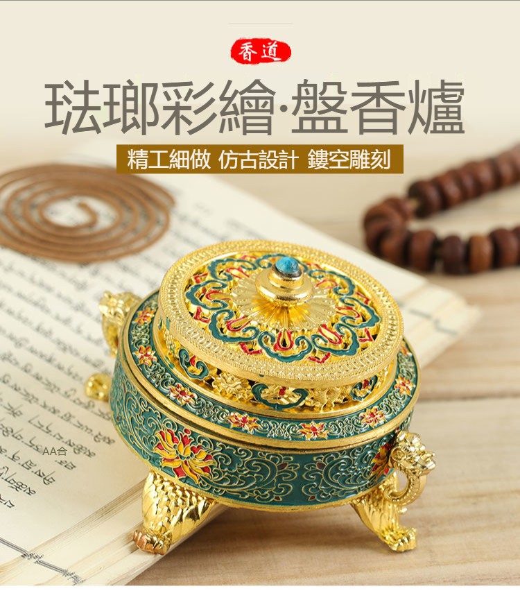 【手工製作】琺瑯禪意爐檀香爐 藏式八吉祥盤香爐