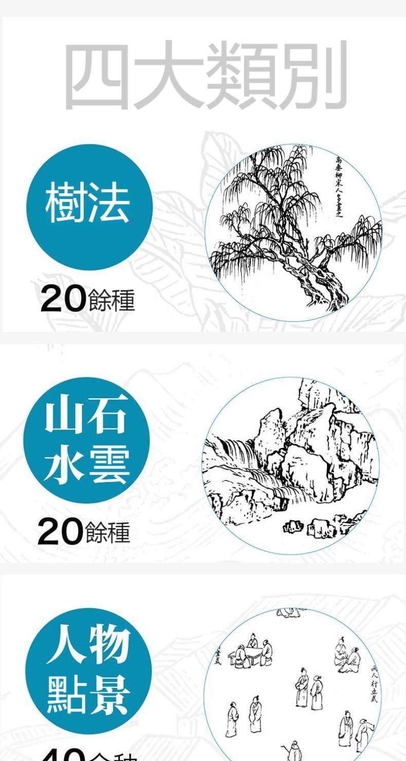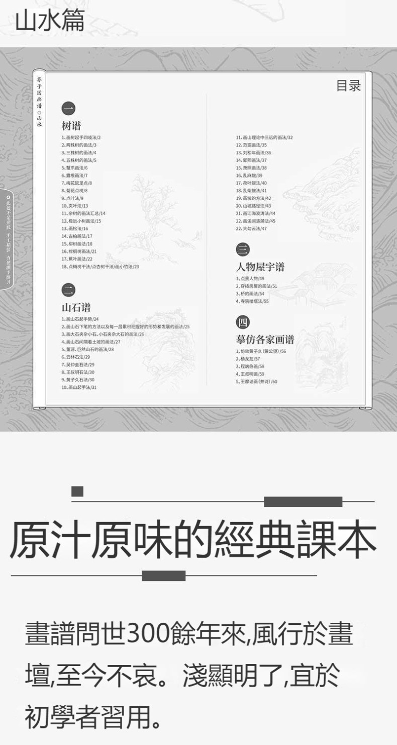 芥子園畫譜全集 4冊 山水林樹 翎毛花卉 人物 梅蘭竹菊 工筆白描超級描摹本 中國畫入門臨摹教材