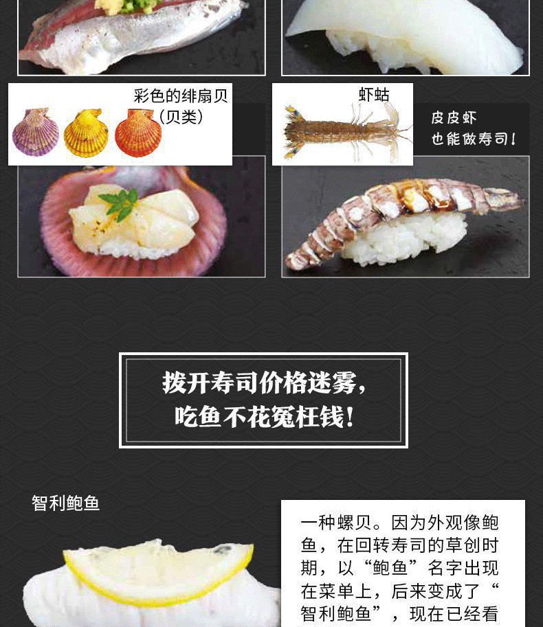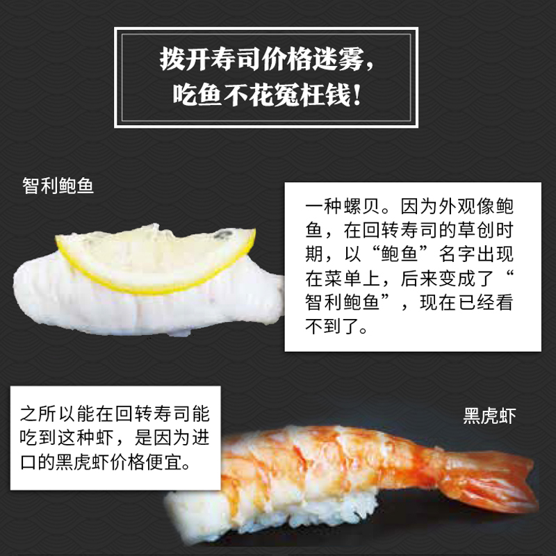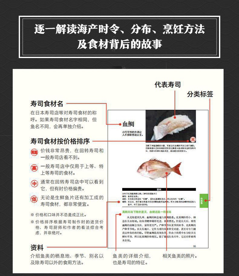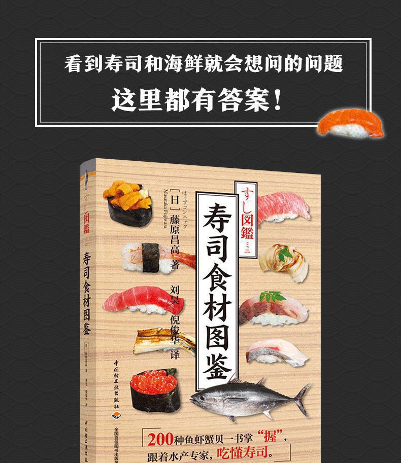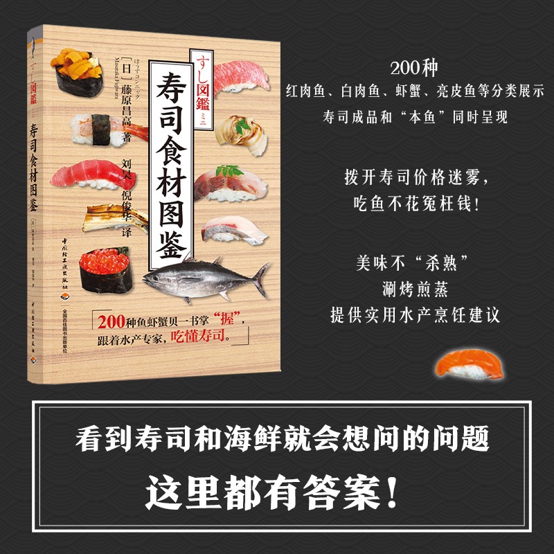 壽司用的食材,一定要生吃才美味嗎?比目魚這麼貴,哪部分最好吃?什麼季節的金槍魚最好吃?研究壽司及海產30餘年的藤原昌高,精選200種美味壽司食材,逐一解讀時令、分佈、烹飪方法及食材背後的故事。紅肉魚、白肉魚、蝦蟹、亮皮魚等分類展示,每種食材項下包括壽司圖片、魚(蝦、蟹、貝)圖片、棲息地、美味季節、名字來歷、其他烹飪建議等。更有易混淆的海鮮品種區分訣竅,看清楚再選,就這麼簡單!