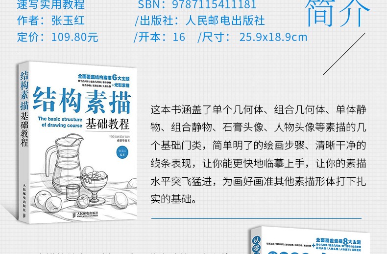 本書從基礎線條的畫法開始,逐漸過渡到簡單規則的物體,培養你基本繪畫能力和對物體結構的認識;然後再慢慢上升到組合物體和復雜物體,提升你對畫面的掌控能力和對複雜結構的認識。全書覆蓋了單個幾何體、組合幾何體、單體靜物、組合靜物、石膏頭像、人物頭像等素描基礎內容,讀者可從零開始,循序漸進地學習。書中的100多個典型案例,從不同角度、不同形體、不同部位進行講解,線條清晰乾淨,步驟講解清晰,案例內容翔實,非常適合臨摹,不僅能讓你更好地掌握繪畫對象的結構,更能夠精準地抓住對象的形體,表現出物體的光影。