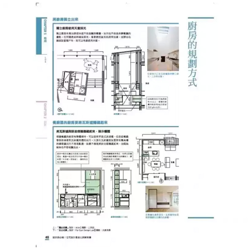 改變地板高低差來劃分區域/改變天花板高低差來劃分區域/包圍中庭/錯開房間來劃分區域/中央樓梯 廚房的規劃方式……… 45