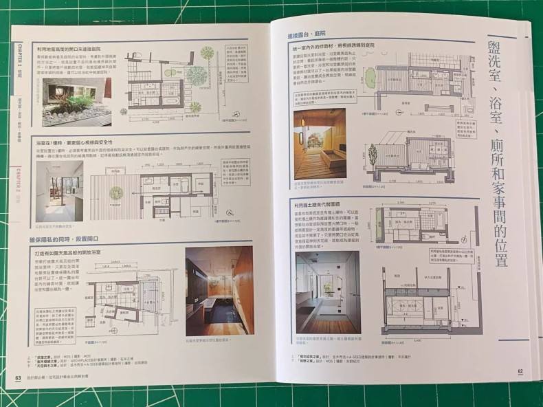 在連接露台、庭院/確保隱私的同時,設置開口/設置迴遊動線 盥洗室、浴室和廁所的規劃……… 65