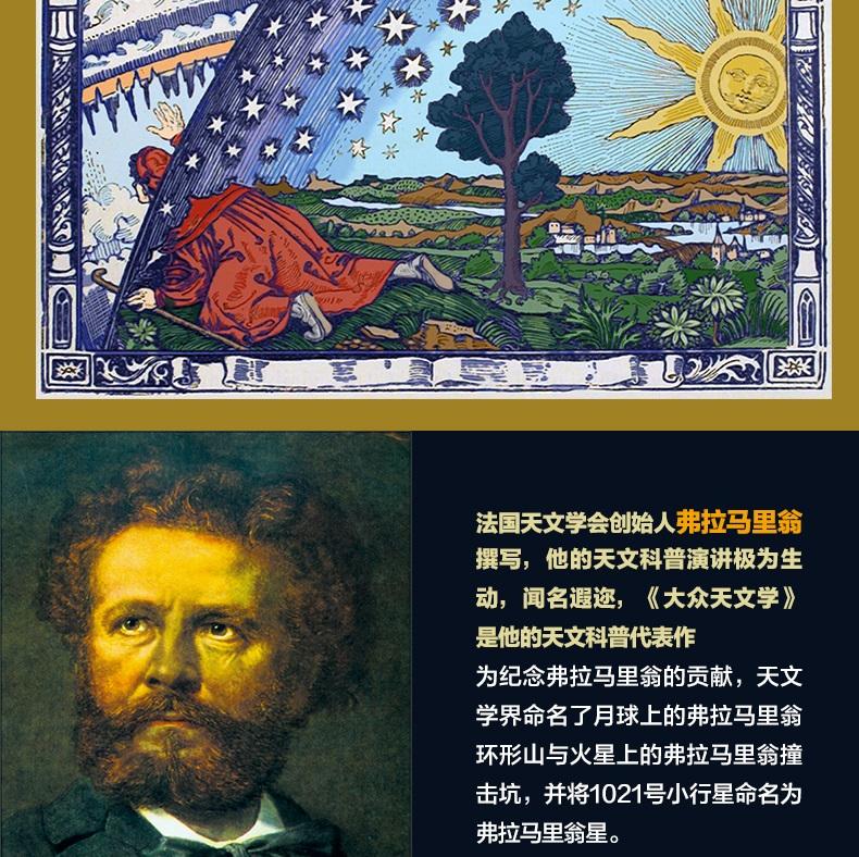 (法)弗拉馬里翁(Nicolas Camille Flammarion,1842—1925),世界著名的天文學家和科普作家。法國天文學會創辦人,創辦《天文學》雜誌。他的天文科普演講極為生動,世界聞名。他一生著述五十餘部,尤以《大眾天文學》*為著名。該書一再重印、修訂再版,被翻譯成十幾種文字,風行全球。