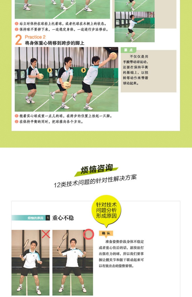 本書首先對羽毛球運動中應關注和提高的身體功能及其訓練方法進行了介紹。接著,本書通過500餘幅動作連拍圖,對發球、擊球、步法、接球等多種基本技術的正確姿勢和技術要點進行了分析,並在此基礎上對支撐各技術動作的特定身體功能的訓練改善方法進行了講解。此外,本書對12類羽毛球愛好者的常見煩惱的形成原因和解決方法進行了詳細解析,旨在幫助練習者有針對性地、高效地提升球技。