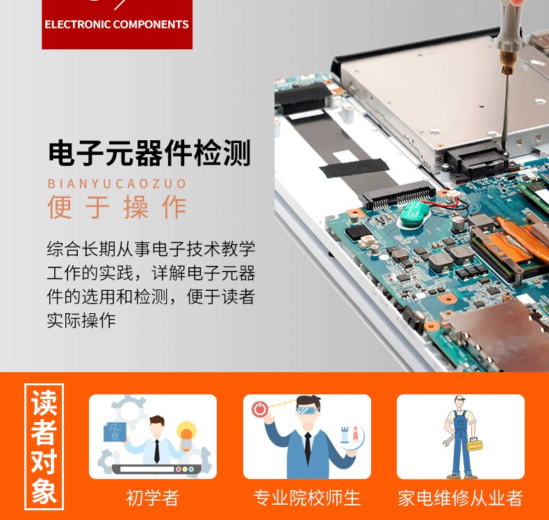 1.全書內容彩色圖解,層次分明、重點突出,複雜難懂的專業知識更容易理解2.全書知識體系完整,包含了電子技術基礎、電路識圖、元器件基礎知識及檢修案例等知識,幫助 讀者打下堅實的專業基礎3.基礎知識與檢修實戰同步講解,非常適合零基礎讀者邊學邊實踐。 4.元件種類齊全,本書包含了電子產品中常用電子元件的識別、應用、檢修等內容 5.視頻輔助講解,在重要的知識點配備視頻講解,手機掃描二維碼即可觀看學習