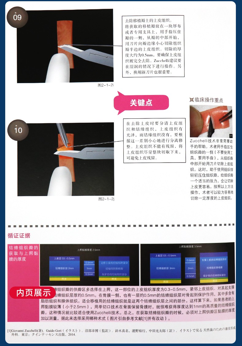 本書力求“容易看”“看得懂”,把平面圖難以表現出來的操作重點及軟組織特徵描繪出來,筆者採用立體的3D插圖來更清楚地展示手術過程,如手術中瓣的厚度及位置變化、器械的角度與方向等,故特別適合手術時放在椅旁,做到哪一步就翻到對應的頁面,邊做手術邊確認手術方法。