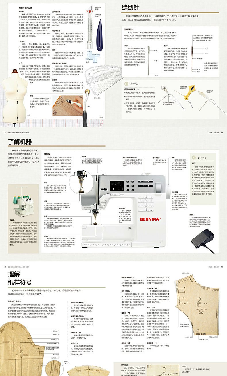 不同的針法、縫份和效果,包括高級工藝;