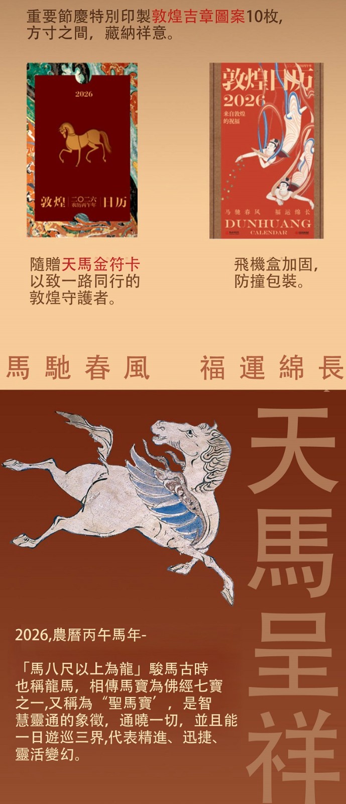 【刷邊特裝版】2026丙午馬年 敦煌日曆 迎新納吉 附贈 天馬金符卡