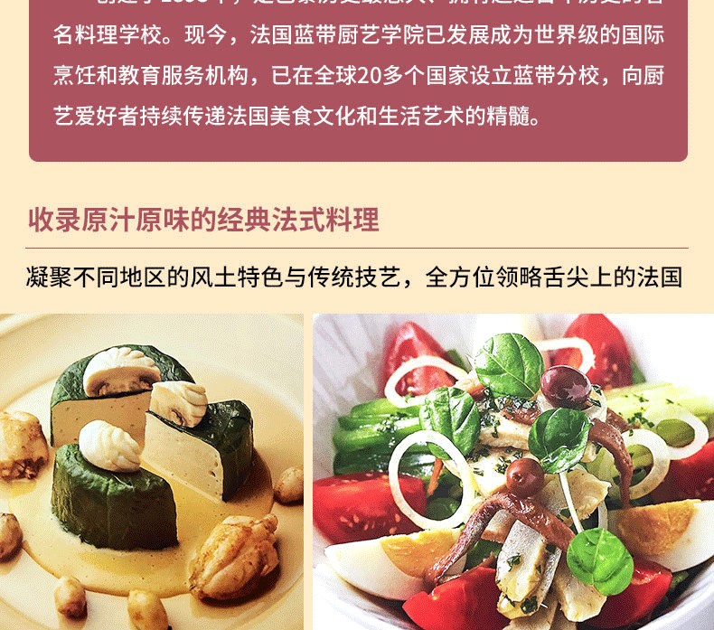 法國藍帶廚藝學院 創建於1895年,是巴黎歷史很悠久、擁有超過百年曆史的有名料理學校。現今,法國藍帶廚藝學院已發展成為重量的靠前烹飪和教育服務機構,已在優選20多個國家設立藍帶分校,向廚藝愛好者持續傳遞法國美食文化和生活藝術的精髓。