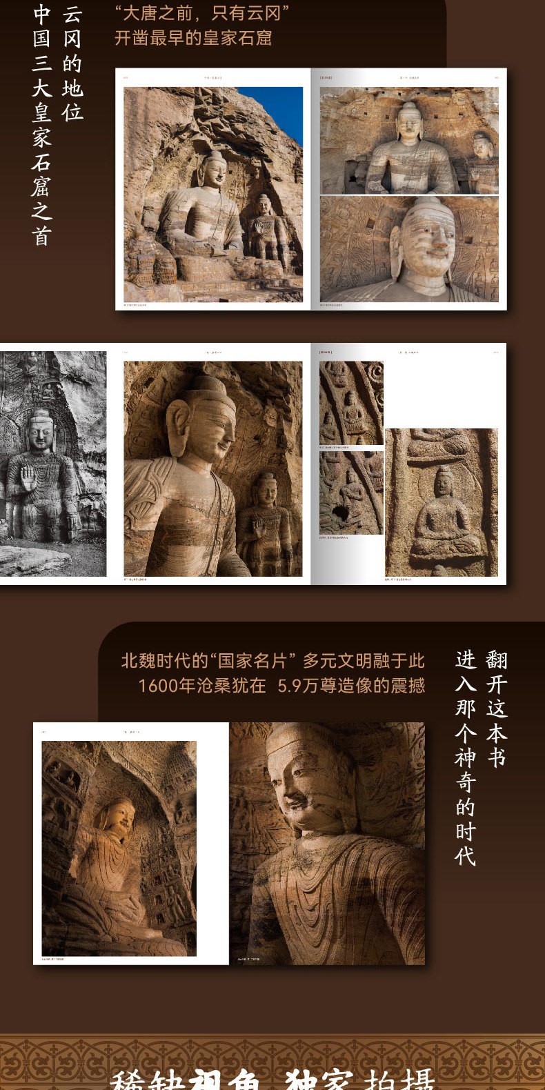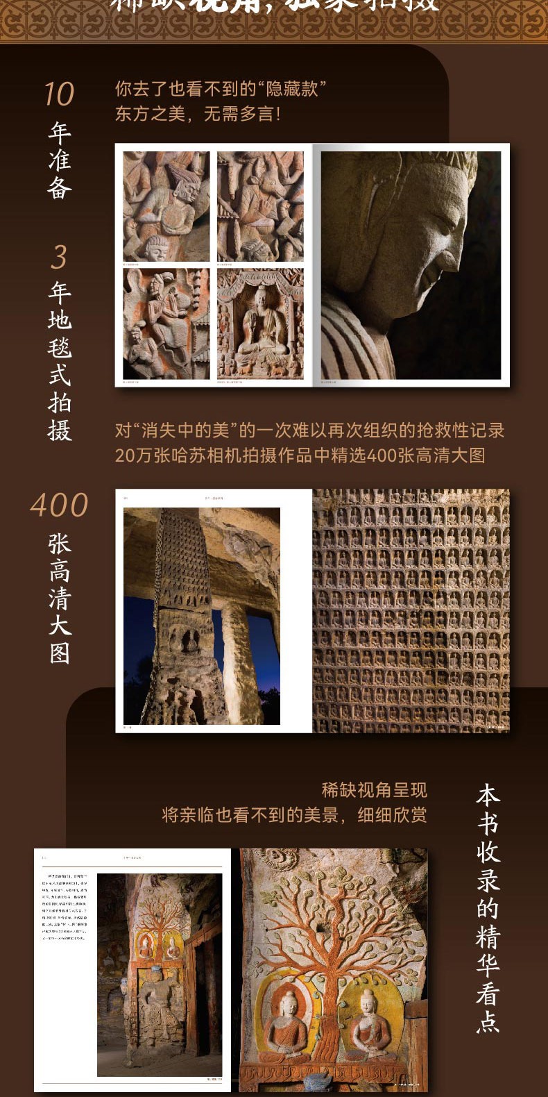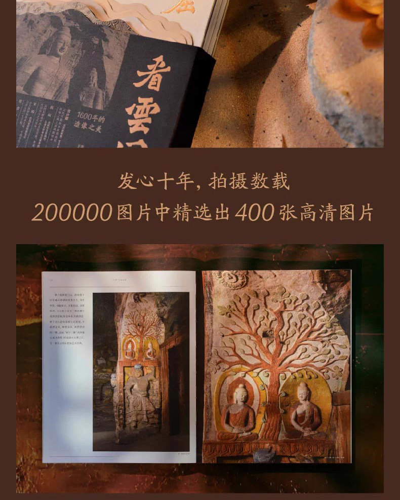 本書圖片是從作者歷時多年,用哈蘇拍攝的200000餘張大畫幅照片中,精選出400幅不為普通觀眾所看的角度,全面展現雲岡石窟的迷人魅力。