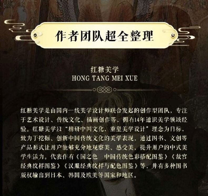 紅糖美學是由國內一線美學設計師共同發起的創作團隊,主要從事插畫繪圖、內容創作、產品設計等業務,擁有13 年通識美學領域經驗,致力於挖掘、再造、創新中國傳統文化的美學表現,透過圖書、文創等產品將中式美學翻譯給大家,讓大家充分觀察美、感受美。以「精研中國文化,重塑美學設計」理念為目標,致力於創造高品質國潮美學產品,提升使用者的美學生活力。
