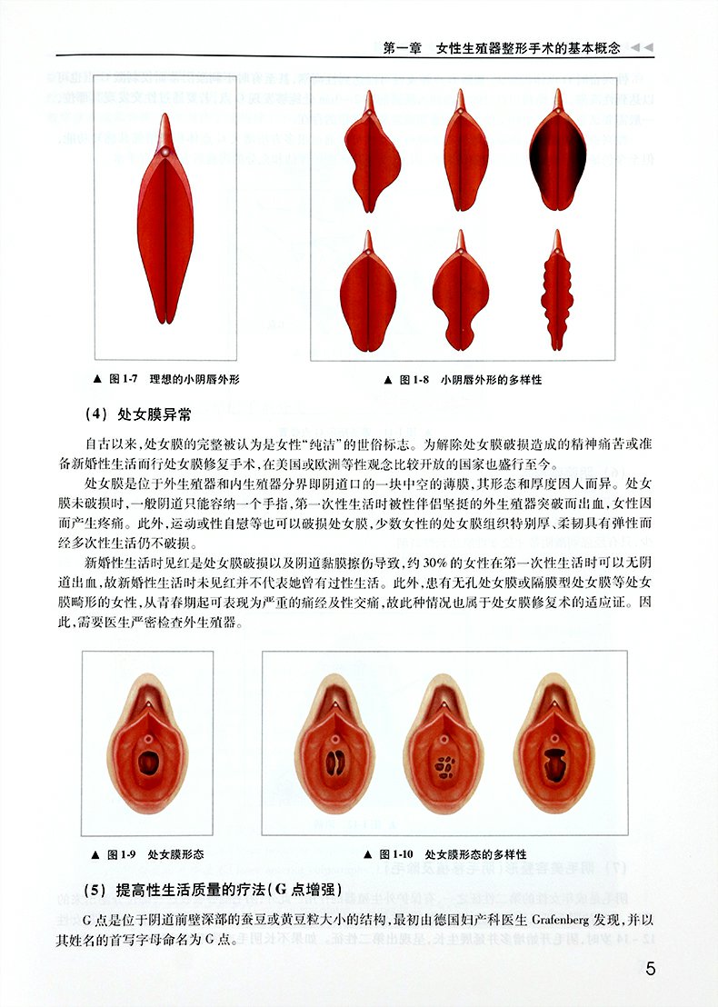 元鐵(韩国)编著的《女性生殖器整形學(精)》是一本專 業性*強的韓語專*,書中外來語應用較多,混合在 韓語的字裡行間,非專業學者翻譯起來難度大。譯者 既要有熟練的韓語和英語功底,又要有較好的漢語理 解和表達能力。加上女性生殖器整形學是一個新興領 域,很多專業術語、手術名稱在婦產科學中尚未達成 共識,翻譯時不易準確的把握其原意、含義及引申意 。女性生殖器整形手術可以定義為是一系列改變女性 外生殖器外觀的手術或為改善性生活質量的陰式手術 ,屬於整形外科學和婦科學。狹義手術範疇包括:小 陰唇整形、大陰唇整形、大陰唇豐滿、陰蒂包皮切除 、會陰體成形、處女膜修復和陰蒂提升等術式。若按 手術目的歸類,則包括基於女性生殖道畸形所致結構 功能重建的女性生殖整復、基於非生殖道畸形功能障 礙的女性生殖整復,以及基於改變外生殖器形態及功 能以美學要求和性需求為目的的女性生殖整復。