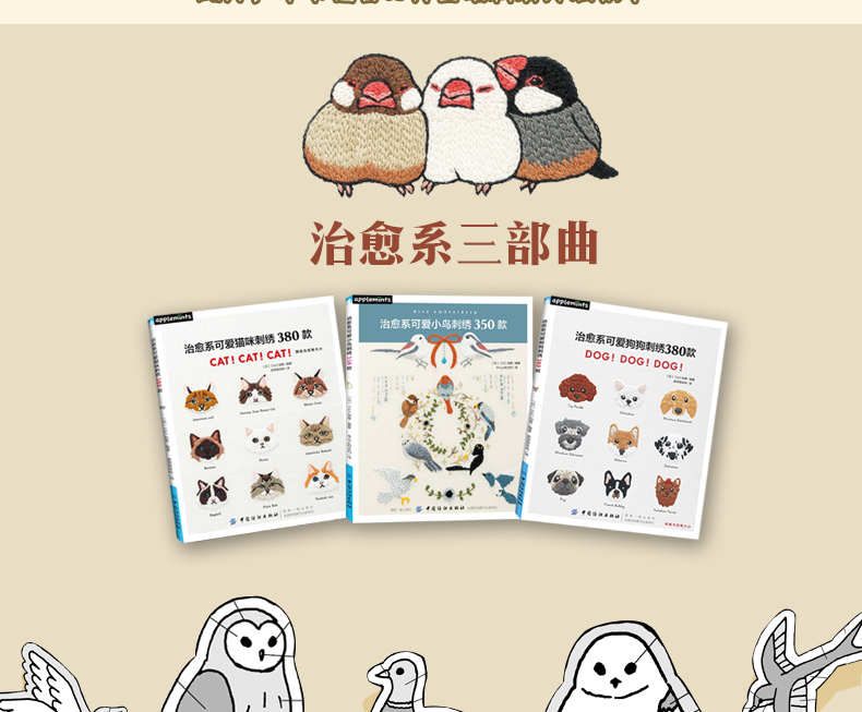 全彩5冊 貓刺繡 犬刺繡 鳥刺繡 花刺繡 日本多位刺繡大師傾力打造 歐式傳統刺繡 匈牙利刺繡